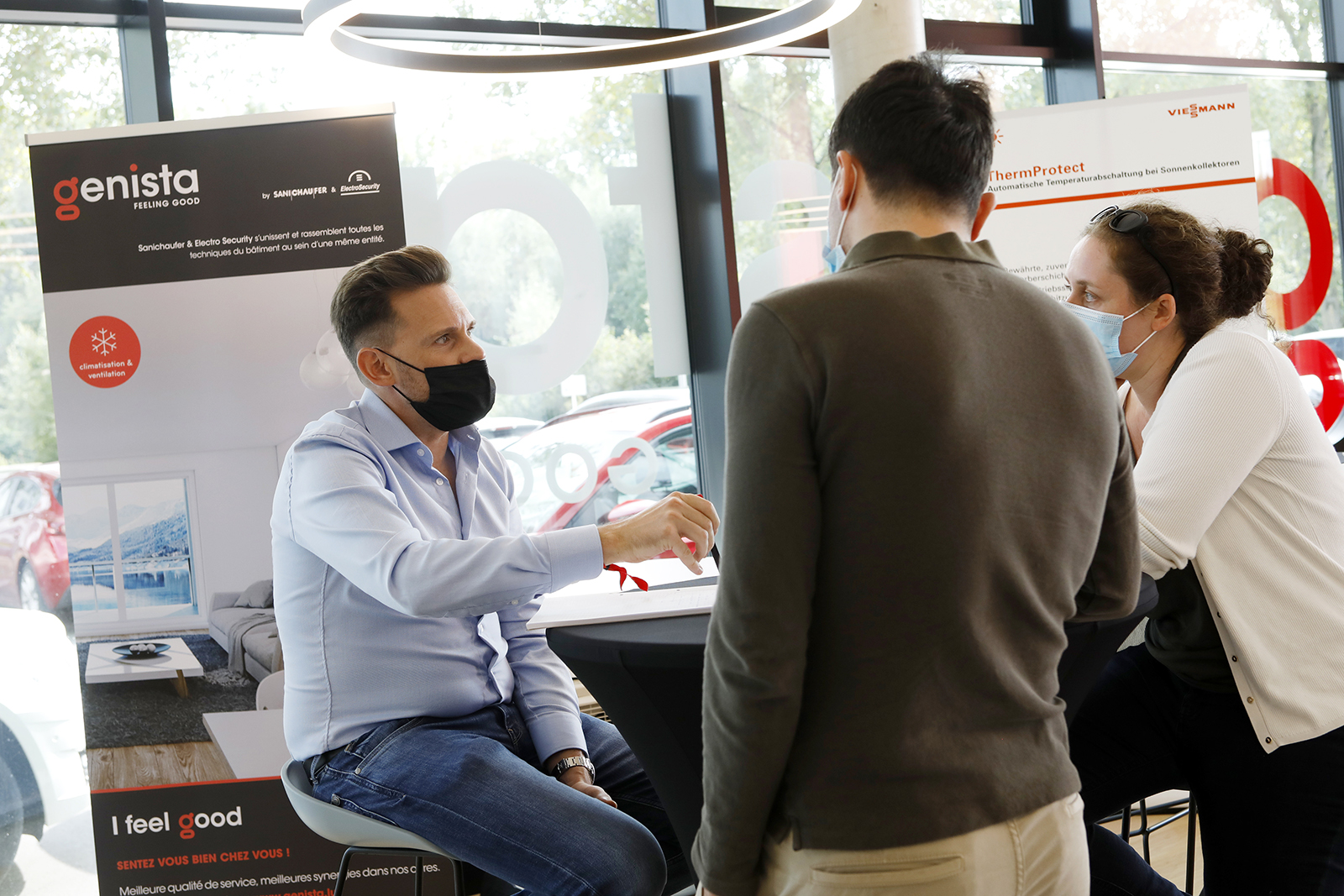 Stéphane Baly, Vorverkaufsleiter bei Genista, repräsentierte die Abteilung Sicherheit und insbesondere gAlarm, die neue Marke der Firma, die Alarmanlagen zu attraktiven Preisen anbietet. "Es ist immer ein Vergnügen, unsere zukünftigen Kunden in unserem Showroom zu treffen. Wir können sie beraten und begleiten indem wir unsere Produkte vorführen."